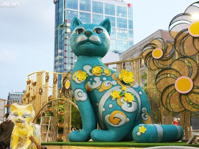 Đường hoa Phú Mỹ Hưng (quận 7, TP.HCM) với những biểu tượng lúa chín, cánh đồng hoa, chuột tài lộc... thu hút đông đảo người dân tham quan, chụp ảnh.