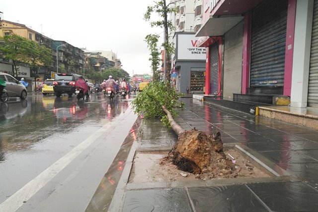 Hà Nội: Cây xanh bật gốc, đường ngập sau trận mưa lớn đầu tiên