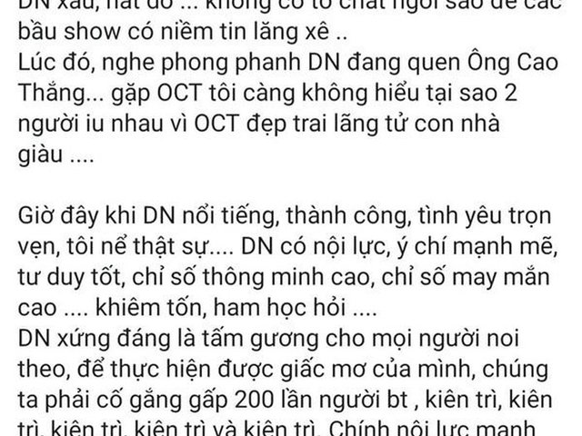 Trước những chỉ trích của dư luận về bài viết khuyên bà Lê Hoàng Diệp Thảo đi thiền, Dương Yến Ngọc tiếp tục gây chú ý khi chia sẻ cuộc trò chuyện giữa cô và ông Đặng Lê Nguyên Vũ.