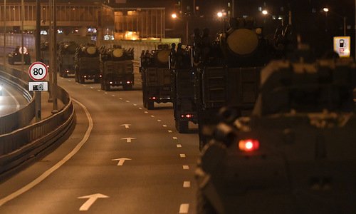 Hơn 100 xe chở vũ khí duyệt binh Nga tiến vào Moskva