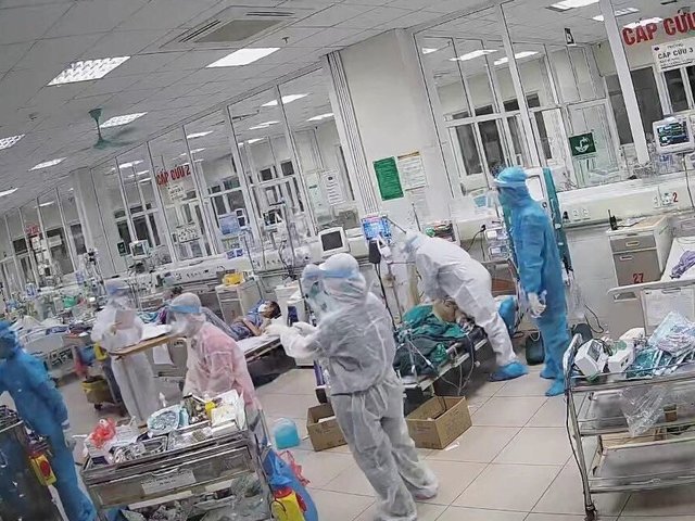 Bác sĩ ép tim liên tục cấp cứu cho bệnh nhân COVID-19