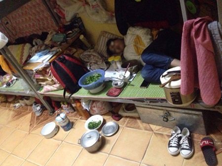 Chiếc giường nho nhỏ tại ký túc xá nữ không còn chỗ nào trống, bởi ngoài chăn gối, balo, quần áo thì bên cạnh cô gái đang ngủ vẫn còn nguyên rổ rau, bát đĩa, nồi cơm điện, thậm chí là...lọ đựng gia vị.