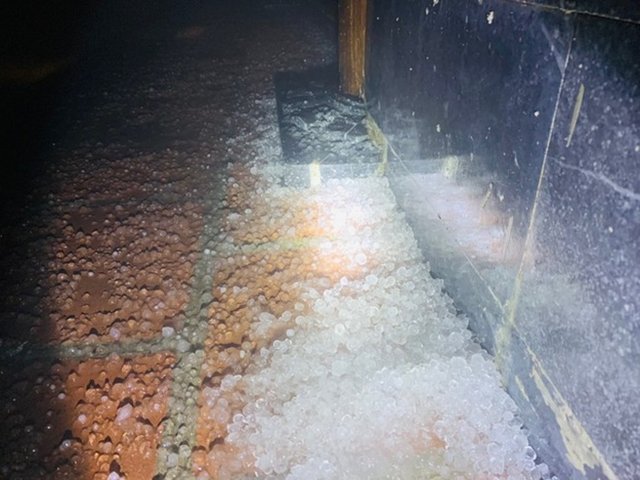 Trận mưa đá kéo dài 10 phút đã trút xuống đỉnh Fansipan (Lào Cai) và để lại lớp đá dày, phủ trắng đường đi, có viên đá đường kính lên tới 2,5 - 3cm.