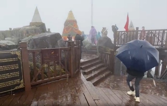 Khoảng 15h25, ngày 26/12, tuyết bất ngờ rơi trên đỉnh Fansipan (tỉnh Lào Cai) dù nhiệt độ ở mức 1 độ C khiến nhiều người ngỡ ngàng.