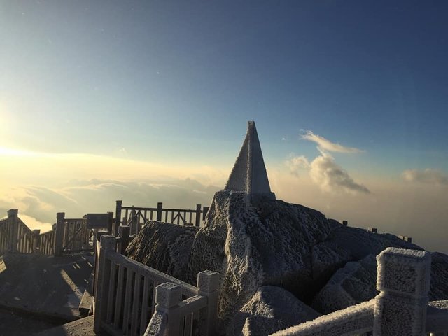 Sáng 19.12, nhiệt độ trên đỉnh Fansipan (Sa Pa, Lào Cai) xuống thấp và đã xuất hiện băng giá tại khu vực này. Dưới đây là một số hình ảnh về đỉnh Fasipan phủ trắng băng tuyết.