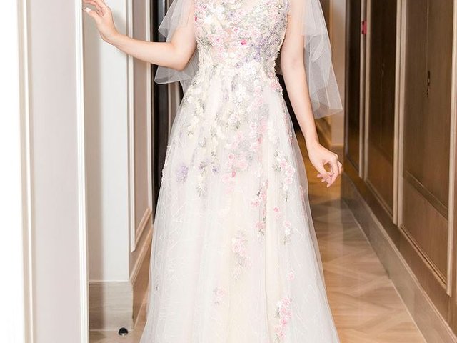 Hoa hậu châu Á tại Mỹ diện váy hoa xuyên thấu lộng lẫy và xinh đẹp khi đảm nhận vai trò MC tại một sự kiện ở TP. HCM.