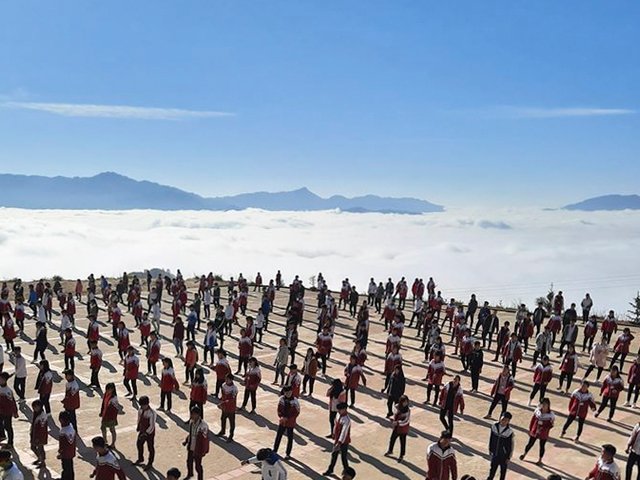Đoạn video và hình ảnh học sinh Hà Giang tập thể dục giữa biển mây tuyệt đẹp đã thu hút được hơn 10.000 lượt thích chỉ sau 30 phút đăng tải.