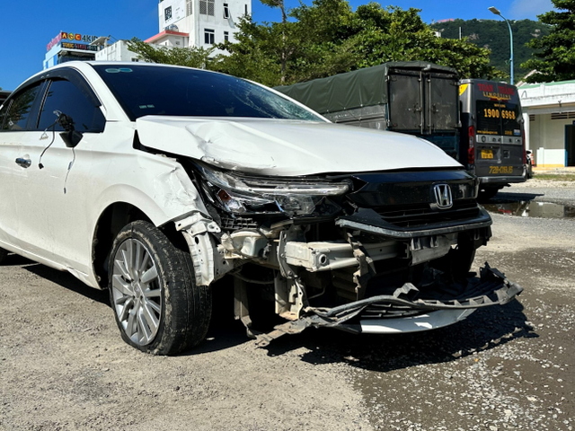 Chiếc Mercedes chạy thử do nam thanh niên cầm lái đã tông vào xe máy rồi tiếp tục lao vào ô tô tải đang đậu ven đường.