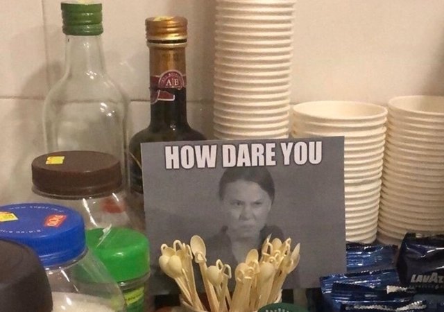 Nhiều công ty ở Tel Aviv đặt ảnh Greta Thunberg ở các khu vực chứa đồ nhựa dùng một lần để nhắc nhở nhân viên hạn chế dùng chúng.