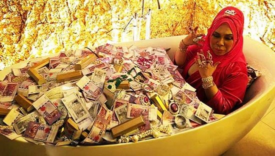 Nữ đại gia Malaysia khoe ảnh nằm trong bồn tắm đầy tiền và trang sức