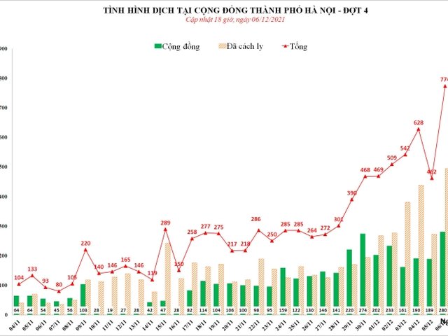 Chiều 6/12, Trung tâm Kiểm soát bệnh tật (CDC) TP Hà Nội thông tin thêm 774 người nhiễm SARS-CoV-2.