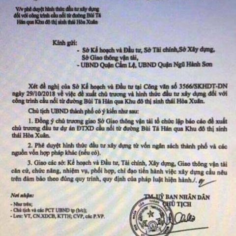 Văn bản giả thể hiện chữ ký, con dấu được cho là của Chủ tịch UBND TP. Đà Nẵng Huỳnh Đức Thơ.