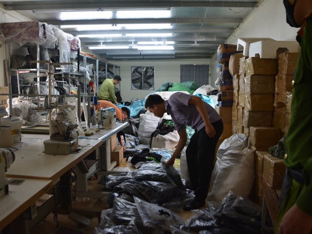 Đội QLTT số 14 (Cục QLTT TP Hồ Chí Minh) vừa phối hợp với UBND phường Tây Thạnh, quận Tân Phú, TP Hồ Chí Minh kiểm tra điểm kinh doanh quần áo may sẵn ở đường Tây Thạnh, phường Tây Thạnh, phát hiện tại đây số lượng lớn quần áo may sẵn có dấu hiệu giả mạo các nhãn hiệu đang được bảo hộ tại Việt Nam.