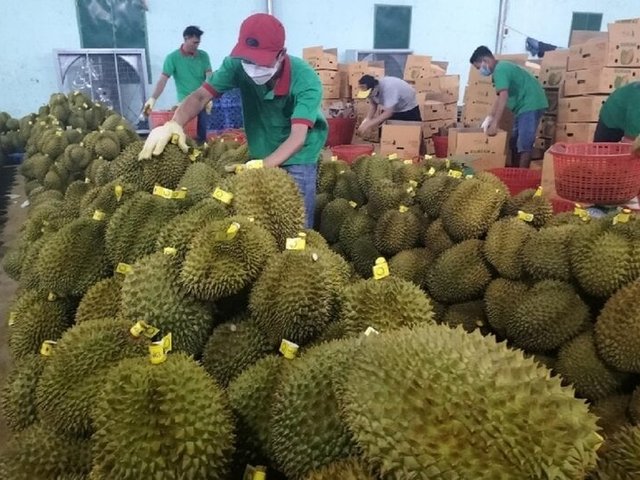 Trung Quốc ngưng thông quan những container sầu riêng từ Việt Nam khiến giá thu mua loại quả này rớt mạnh.