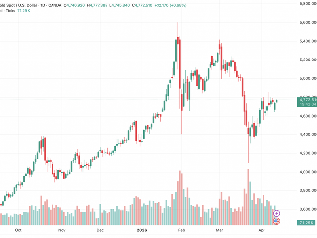 Tính đến 8h15 sáng nay (14/4), giá vàng giao ngay tăng 32,170 USD, giao dịch ở 4.772,510 USD/oz; trong khi đó giá vàng tương lai tháng 6 tăng 30,65 USD lên 4.798,05 USD/oz.