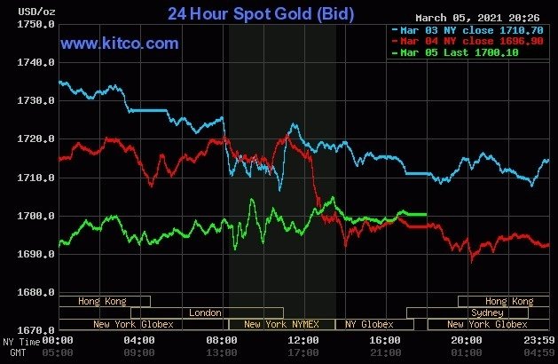 Mỗi ounce vàng quay về mốc 1.700 USD, trong khi các chỉ số chính tại Wall Street tăng gần 2%.
