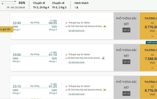 Dù hàng không Việt Nam đã tăng số lượng lớn các chuyến bay tới TP.HCM trong dịp lễ 30/4-1/5 nhưng giá vé vẫn tăng cao, số lượng chỗ ngồi cũng gần như cạn kiệt.