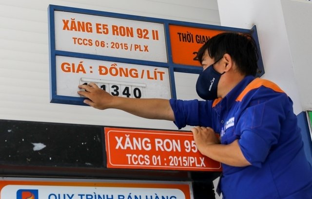 Từ 15h, mỗi lít xăng E5RON92 giảm 159 đồng, RON95 III giảm 182 đồng nhưng các mặt hàng dầu lại tăng 90-340 đồng.