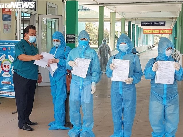 Giám đốc Sở Tư pháp Đà Nẵng cùng 7 bệnh nhân COVID-19 được Bệnh viện Phổi Đà Nẵng và Trung tâm Y tế Hòa Vang chữa khỏi, xuất viện ngày 31/5.