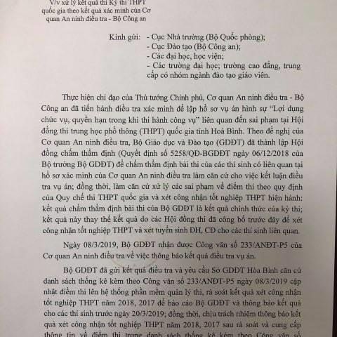 Trường công an sẽ hủy kết quả của thí sinh gian lận điểm ở Hòa Bình
