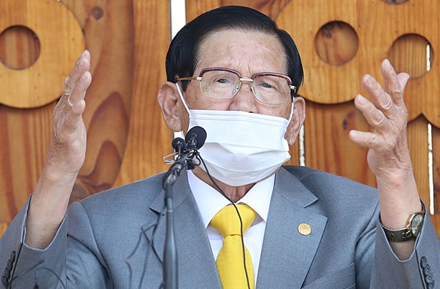 Giáo chủ Tân Thiên Địa Lee Man-hee từ chối lấy mẫu xét nghiệm tại cuộc họp báo hôm qua và tuyên bố mình âm tính với nCoV.