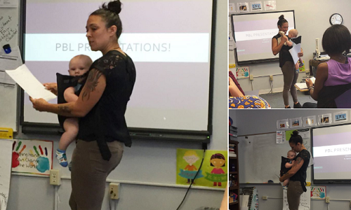 Giáo sư Mỹ vừa giảng bài vừa bồng con hộ sinh viên