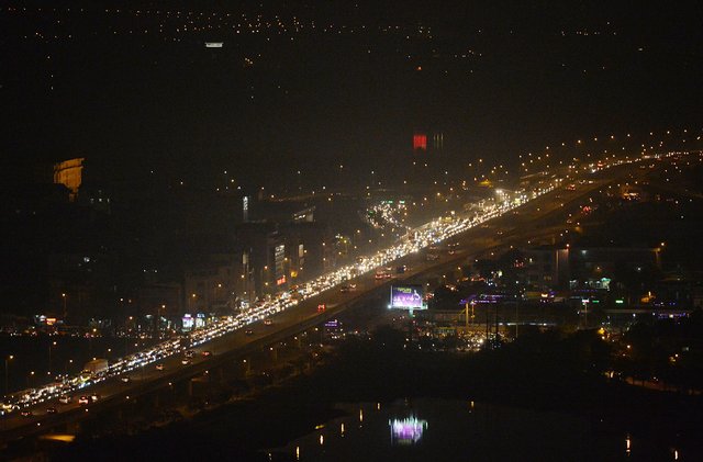 Đến 19h, dòng xe vẫn "xếp" thành hàng dài tại đường trên cao hướng từ cầu Thanh Trì về đường vành đai 3.