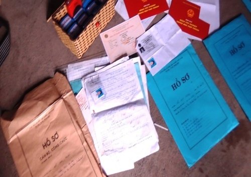 Tang vật có giấy khám sức khỏe giả của bệnh viện, con dấu giả của cơ quan, tổ chức, trong đó có Sở Y tế, Sở GD-ĐT Đồng Nai, các trường đại học, cao đẳng ở phía Nam.
