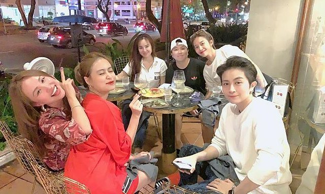 Ca sĩ Hoàng Thùy Linh và Gil Lê thoải mái tạo dáng pose hình khi đi chơi chung cùng hội bạn thân, thay vì né tránh như trước.