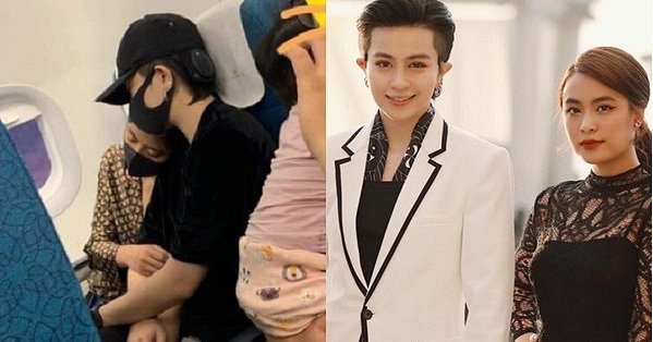 Một khán giả đi cùng chuyến bay chụp được khoảnh khắc tình cảm của Hoàng Thùy Linh và Gil Lê.