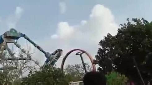 Đu quay gãy giữa không trung ở công viên Ấn Độ