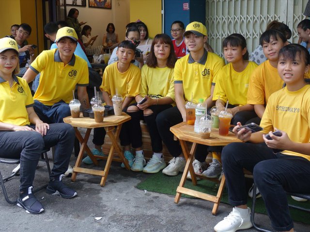 Sáng 30.5, Tuấn Anh cùng Văn Toàn đã đến dự khai trương quán càphê nhỏ của cựu thủ môn tuyển nữ Việt Nam Đặng Thị Kiều Trinh.