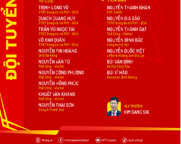Danh sách đội tuyển U22 Việt Nam tập trung tháng 8/2024 có đầy đủ những nhân tố chủ chốt như Khuất Văn Khang, Nguyễn Đình Bắc, Nguyễn Thái Sơn.