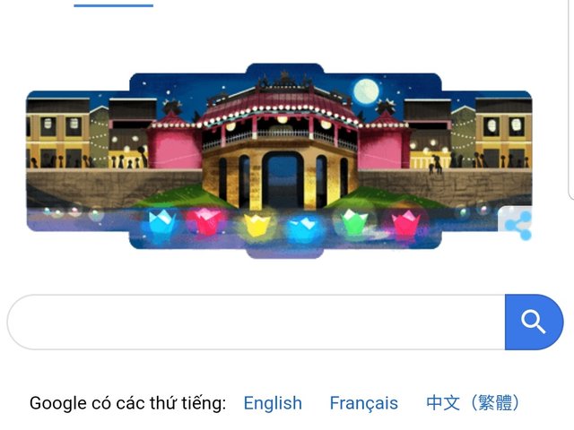 Sáng nay 16/7, hình ảnh phố cổ Hội An với biểu tượng Chùa Cầu, hoa đăng xuất hiện tại bộ công cụ tìm kiếm trên trang chủ của Google.