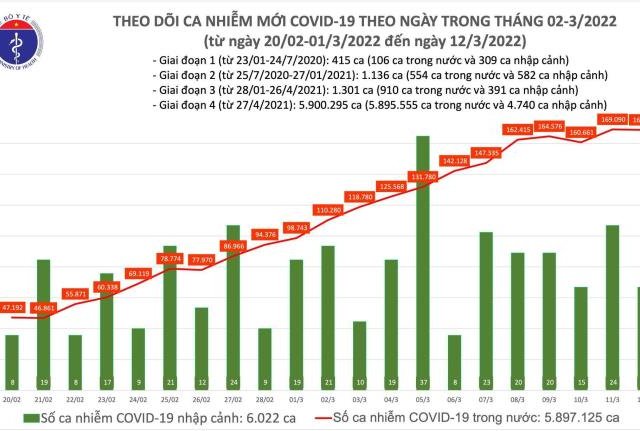 Chiều 12/3, Bộ Y tế công bố thêm 168.719 ca COVID-19, trong đó 168.704 ghi nhận trong nước.