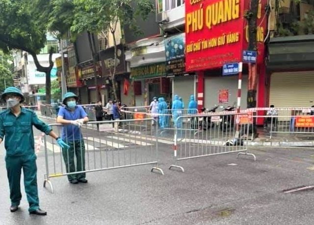 Lực lượng chức năng phong tỏa tạm thời nhiều hộ dân sống trên phố Trần Nhân Tông (Hà Nội) do phát hiện ca F0 chết trong tư thế treo cổ tại khu vực này.