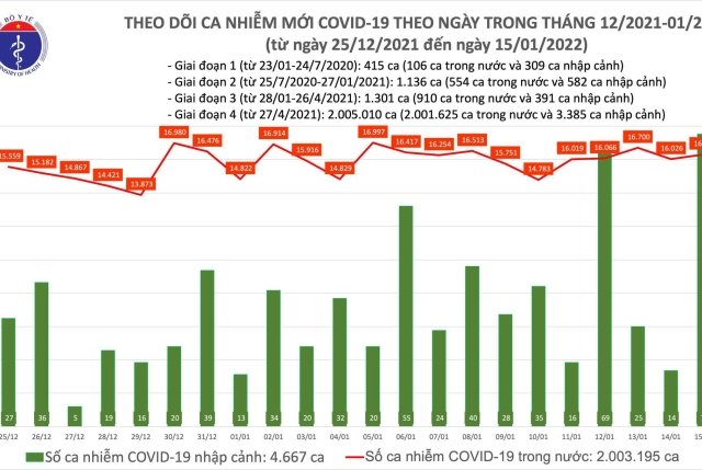 Chiều 15/1, Bộ Y tế công bố thêm 16.378 ca COVID-19, trong đó 16.305 ca ghi nhận trong nước.