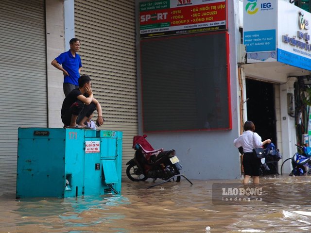 Mưa ngập phố, người Hà Nội "chôn chân" trong nước trên đường đi làm