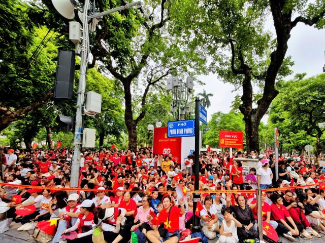 Giới trẻ vượt trăm cây số về Hà Nội check-in phố phường rợp cờ đỏ sao vàng