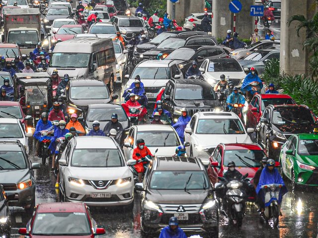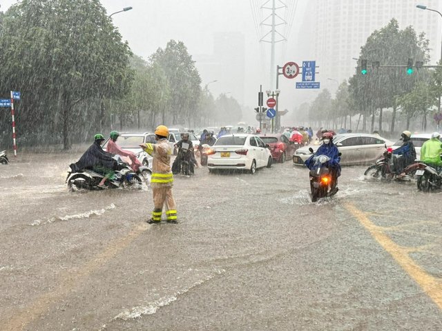 Giao thông Hà Nội hỗn loạn trong cơn mưa như trút nước
