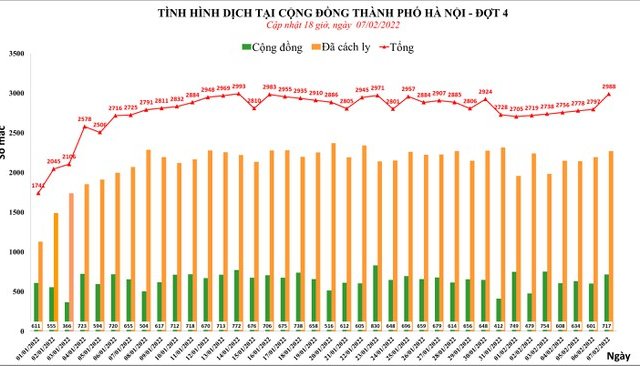 Hôm nay, 7/2, tại Hà Nội ghi nhận 2.988 ca Covid-19, cao nhất kể từ ngày 14-1.
