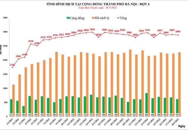 Theo công bố từ Sở Y tế Hà Nội lúc 18h chiều 23-1, trong ngày tại thành phố ghi nhận 2.971 ca Covid-19 mới, tăng nhẹ so với hôm qua.