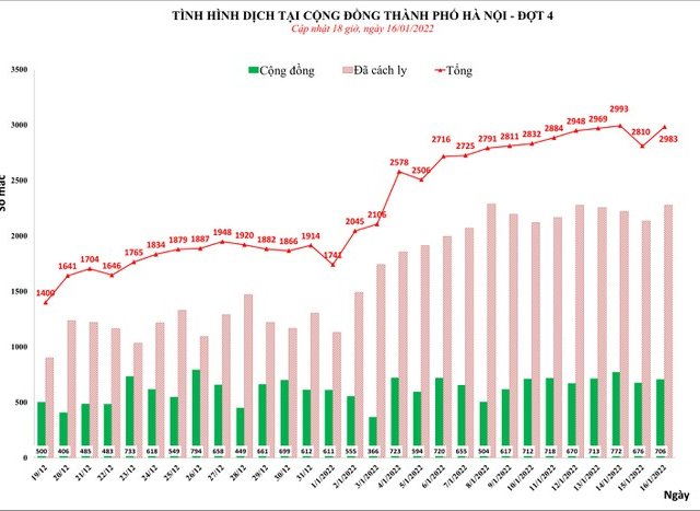 Theo công bố từ Bộ Y tế vào 18h chiều 14-1, hôm nay cả nước ghi nhận 16.026 ca Covid-19 mới, trong đó Hà Nội lần đầu vượt mốc 3.000 ca nhiễm trên ngày.