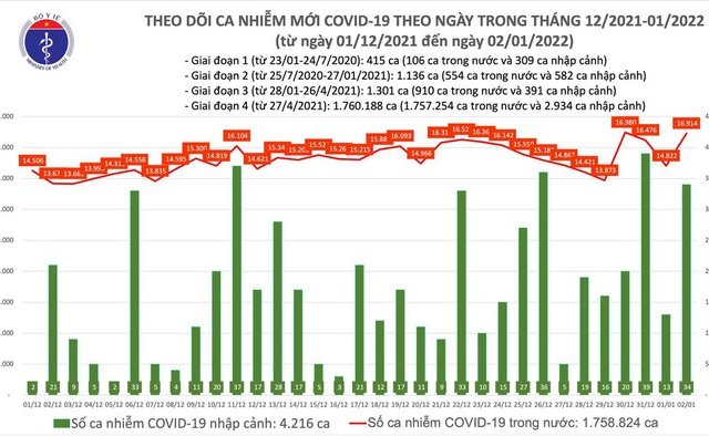 Bộ Y tế cho biết, ngày 2-1, cả nước có 16.948 ca mắc COVID-19 tại 63 tỉnh, thành phố; Hà Nội lần đầu vượt mốc 2.000 ca/ ngày.