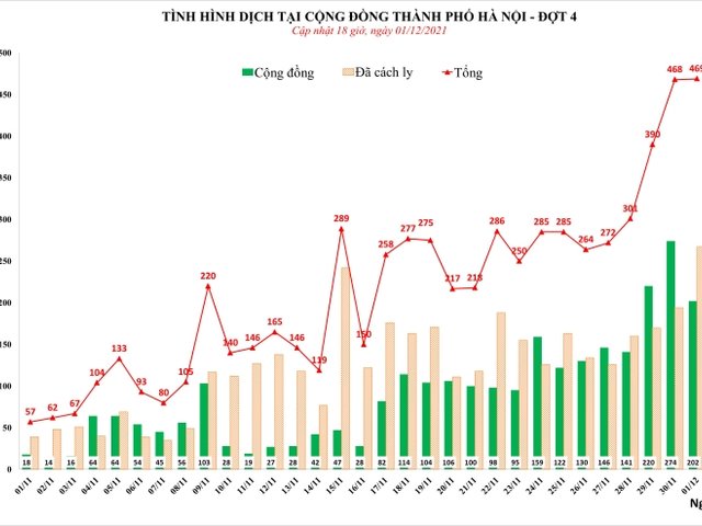 Chiều 1/12, Trung tâm Kiểm soát bệnh tật (CDC) TP Hà Nội thông tin thêm 469 người nhiễm SARS-CoV-2.