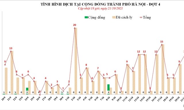 Chiều 21/10, Trung tâm Kiểm soát bệnh tật (CDC) TP Hà Nội thông tin thêm 12 ca dương tính SARS-CoV-2.