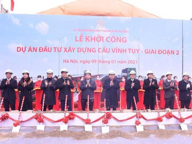 Sáng 9/1, UBND TP Hà Nội đã khởi công xây dựng dự án cầu Vĩnh Tuy- giai đoạn 2.