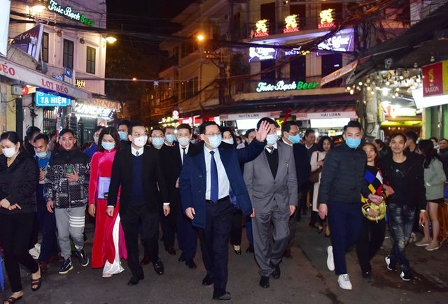 Quận Hoàn Kiếm khai trương không gian đi bộ phía nam khu phố cổ kết nối phía bắc khu vực hồ Hoàn Kiếm, tối 31/12.
