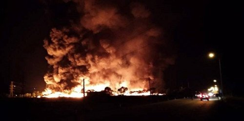 Kho phế liệu bốc cháy rừng rực suốt đêm, cột khói cao hàng chục mét