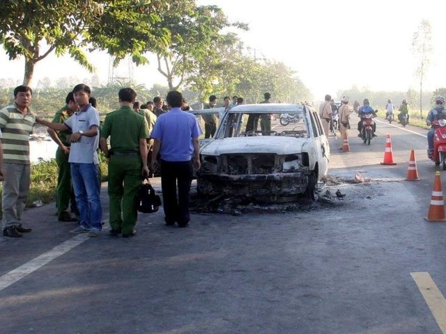 Điều tra vụ cháy ô tô khiến 2 người nhập viện cấp cứu